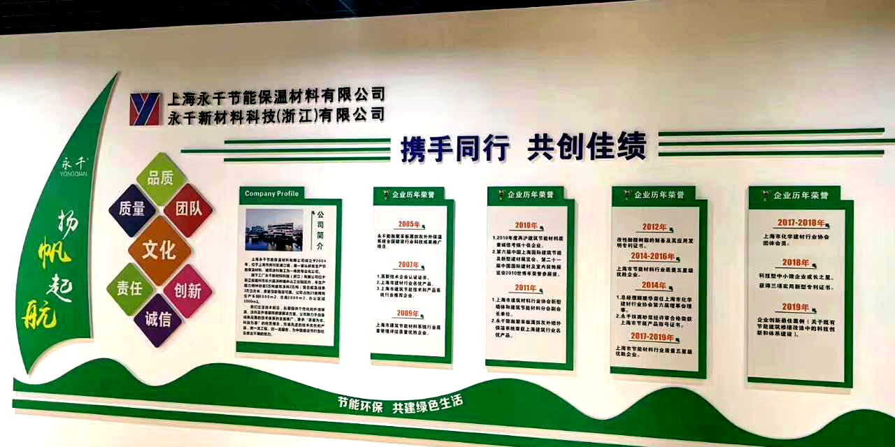 永干建筑科技工程(上海)有限公司成立于2004年1月20日,前身系上海永千節(jié)能保溫材料有限公司,注冊資本1080萬,是一家專注于建筑節(jié)能保溫材料、特種砂漿、和內外墻建筑涂料等材料研究、開發(fā)、生產、銷售、施工為一體的高科技公司,總部位于上海市浦江鎮(zhèn)聯(lián)航路1188號浦江智谷產業(yè)園區(qū)。公司技術研發(fā)實力雄厚,是國家、地方、行業(yè)等多個標準的參編單位,擁有多項實用新型專利,被政府認定為上海市建筑材料行業(yè)理事單位、上海化學建材行業(yè)協(xié)會理事會員、上海市建材行業(yè)協(xié)會五星級優(yōu)勝企業(yè)并擁有建筑工程施工總承包二級資質、防水防腐保溫工程專業(yè)承包一級資質、建筑裝飾裝修工程專業(yè)承包二級資質、建筑幕墻工程專業(yè)承包二級資質。