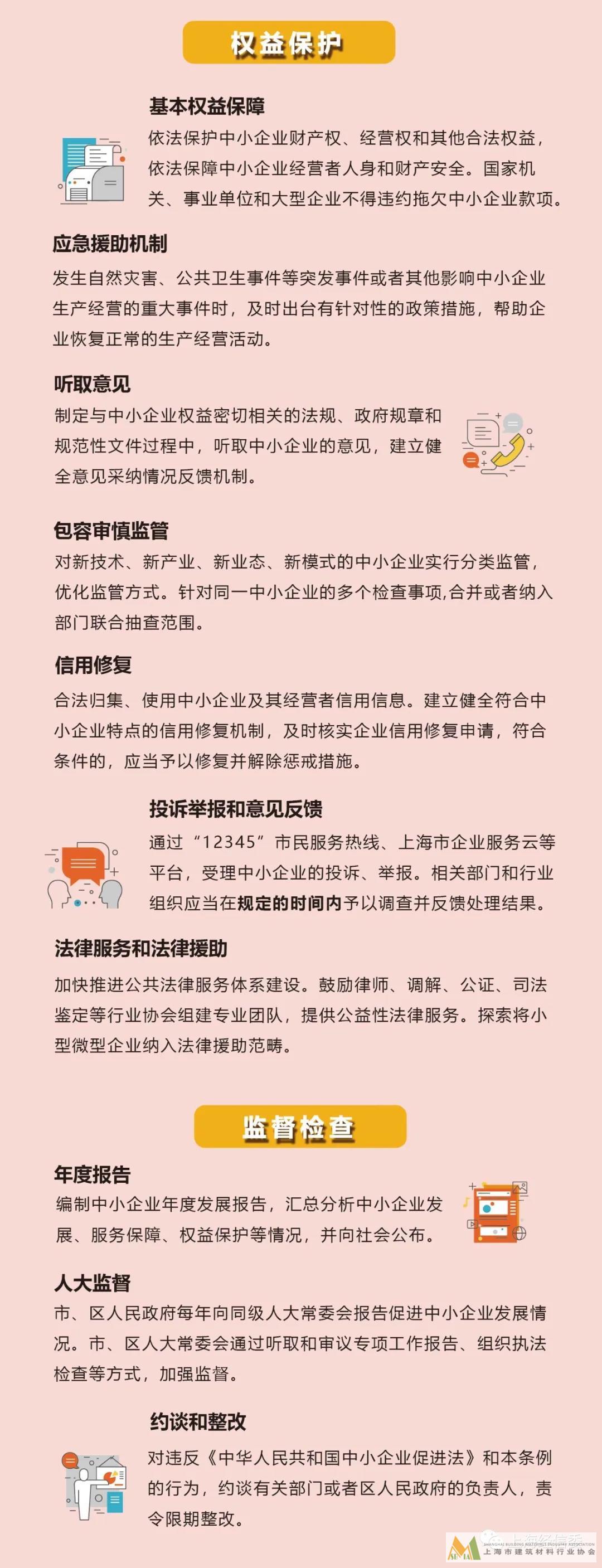 6月18日,《上海市促進中小企業(yè)發(fā)展條例》經(jīng)市十五屆人大常委會二十二次會議表決通過并正式實施?!稐l例》著力建立長效機制,提出將促進中小企業(yè)發(fā)展作為長期發(fā)展戰(zhàn)略,為中小企業(yè)平穩(wěn)健康發(fā)展構(gòu)筑堅實的法治保障。《條例》設(shè)十章,分為總則、服務(wù)保障、財稅支持、融資促進、創(chuàng)業(yè)扶持、創(chuàng)新支持、市場開拓、權(quán)益保護、監(jiān)督檢查及附則,共六十六條。