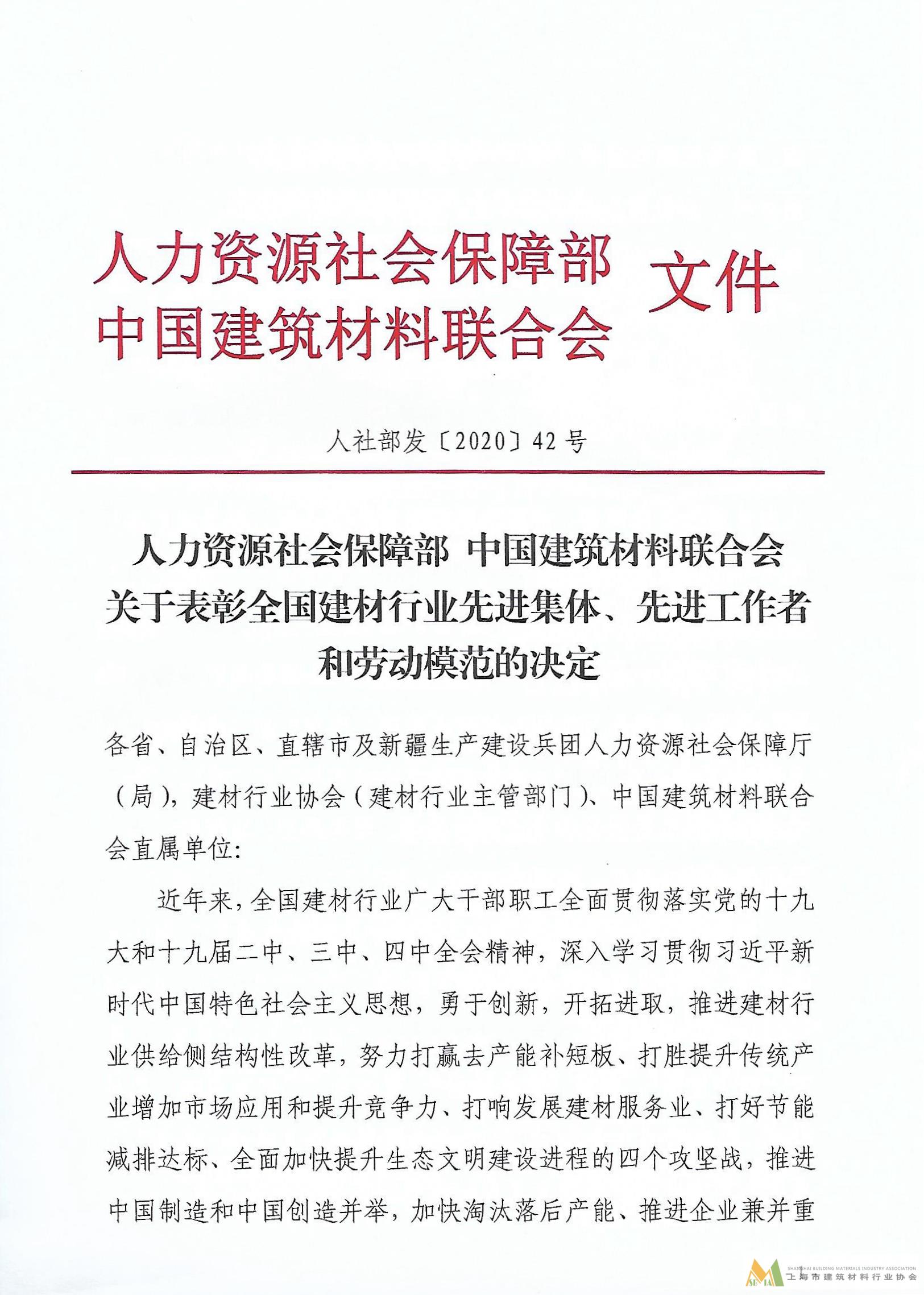 人力資源社會(huì)保障部 中國建筑材料聯(lián)合會(huì)關(guān)于表彰全國建材行業(yè)先進(jìn)集團(tuán)、先進(jìn)工作者和勞動(dòng)模范的決定