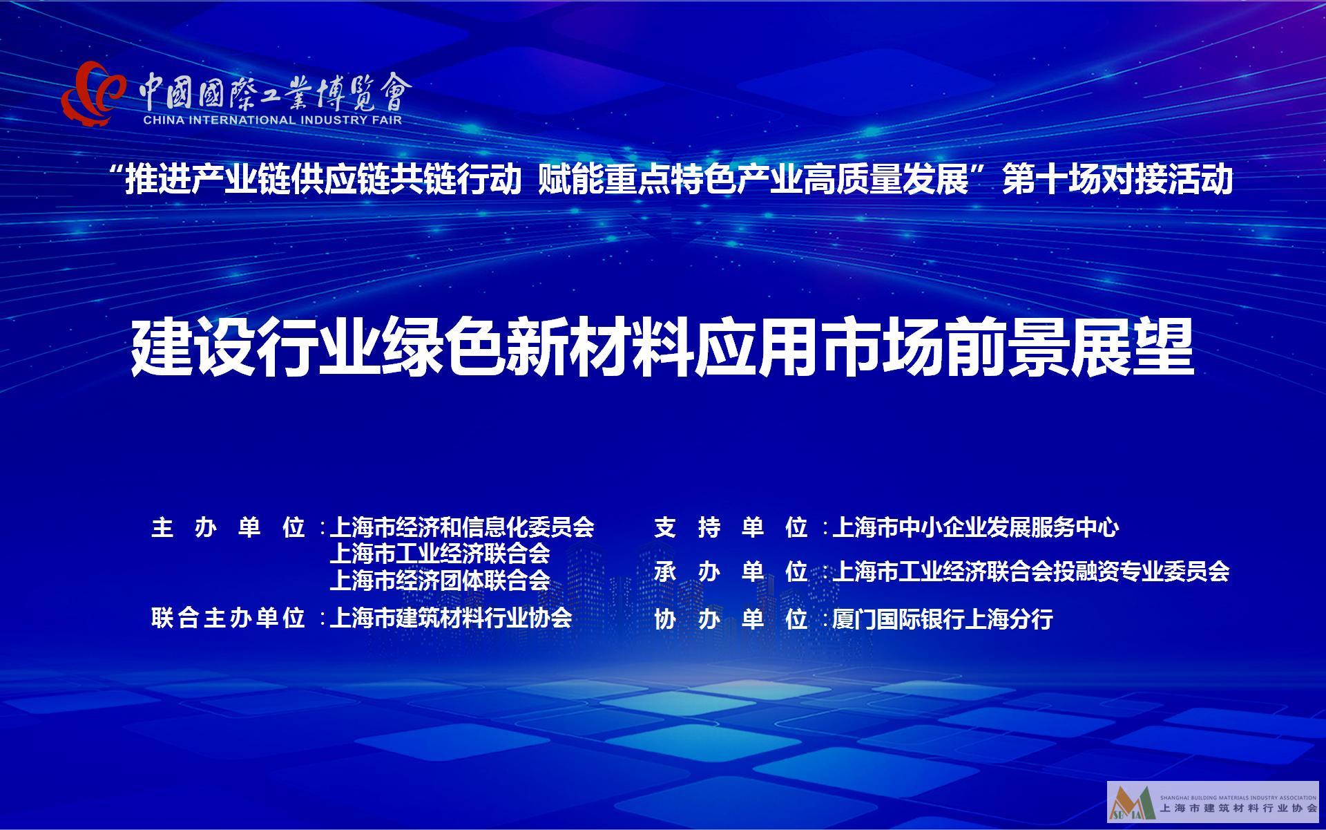 “推進(jìn)產(chǎn)業(yè)鏈供應(yīng)鏈共鏈行動(dòng),賦能重點(diǎn)特色產(chǎn)業(yè)對(duì)接”——第二屆長(zhǎng)三角高端產(chǎn)業(yè)及金融服務(wù)大會(huì)之建設(shè)行業(yè)綠色新材料應(yīng)用市場(chǎng)前景展望專場(chǎng)對(duì)接成功舉行