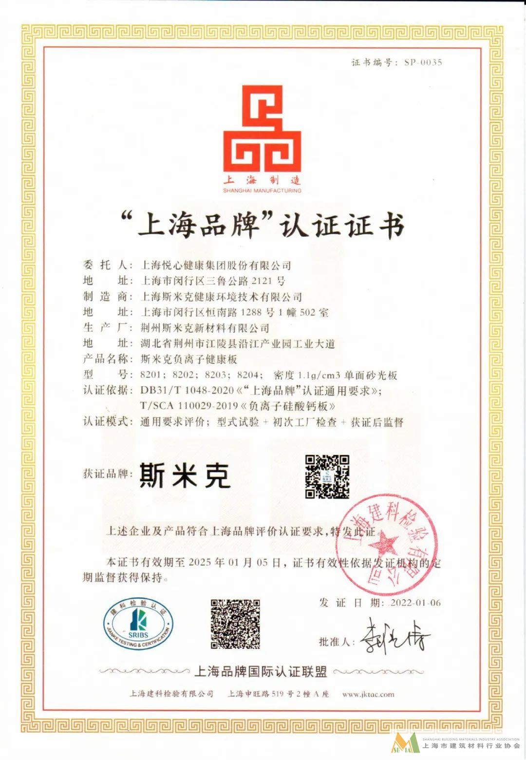斯米克實力蟬聯(lián)“上海品牌”認證