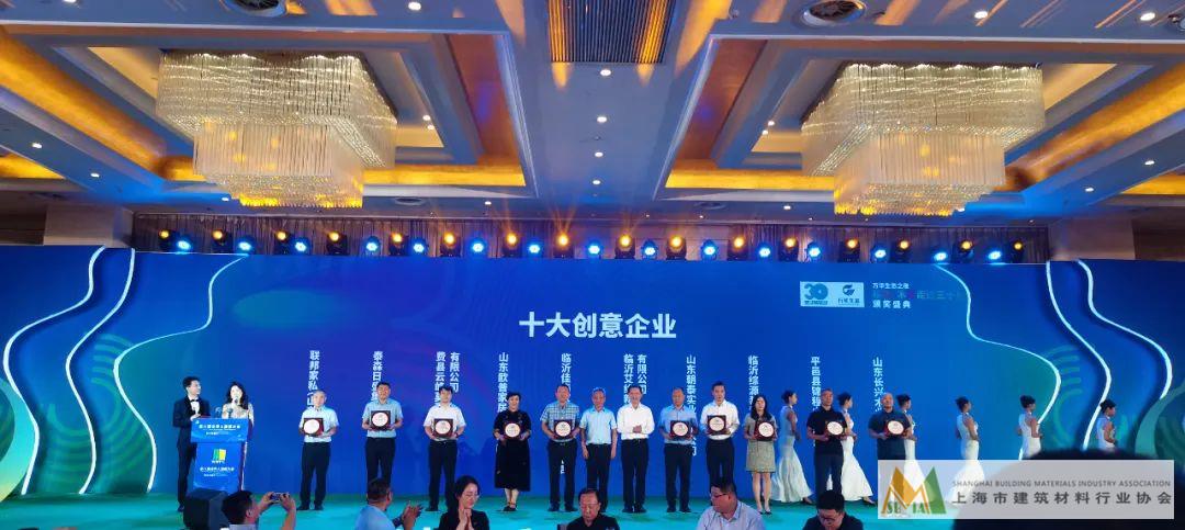 歐普家居董事長姜自蘭女士應(yīng)邀參加晚宴并代表公司獲頒臨沂·木業(yè)走過30年“十大創(chuàng)意”企業(yè)獎牌。