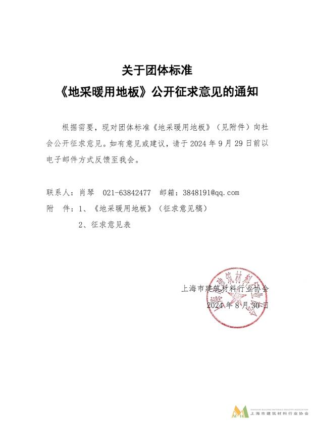 關(guān)于《地采暖用地板》公開征求意見的通知